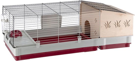 Ferplast kooi 140 Dit cavia verblijf hebben we op het moment staan, de afmetingen zijn 142 x 60 x 50. De cavia’s ervaren het houten huisje als veilig. Het plateau met voerbakje zit er niet meer bij. De kooi is in nette gebruikte staat. 75,00